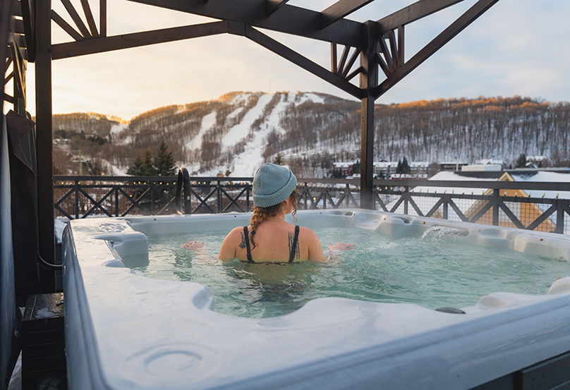 On the terrace, our 4 whirlpools are available to soothe you and to contemplate the panoramic view of the golf course and the mountain. Each bath has an intimate and relaxing layout. Open every day from 8am to 10pm.