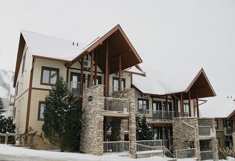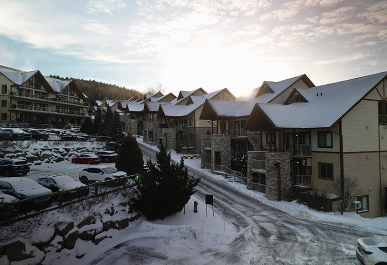Condos Château-Bromont offer the rental of 40 fully furnished condos, ideally located directly on the slopes of Mont Soleil for a true ski-in / ski-out experience in winter. In summer, the Bromont, montagne d’expériences water park is just a 2-minute walk away, while Golf Château-Bromont is accessible in less than a 2-minute drive. Each condo also features a private terrace, perfect for relaxing and enjoying the mountain views and the vibrant atmosphere of a vacation getaway.