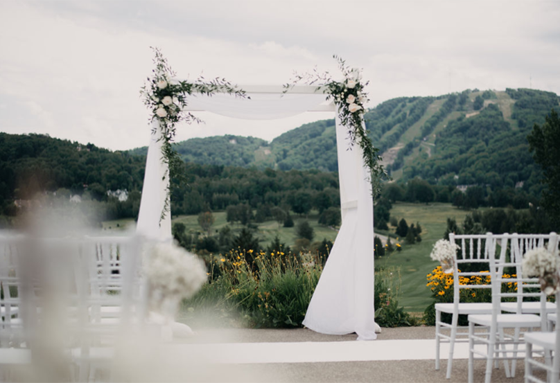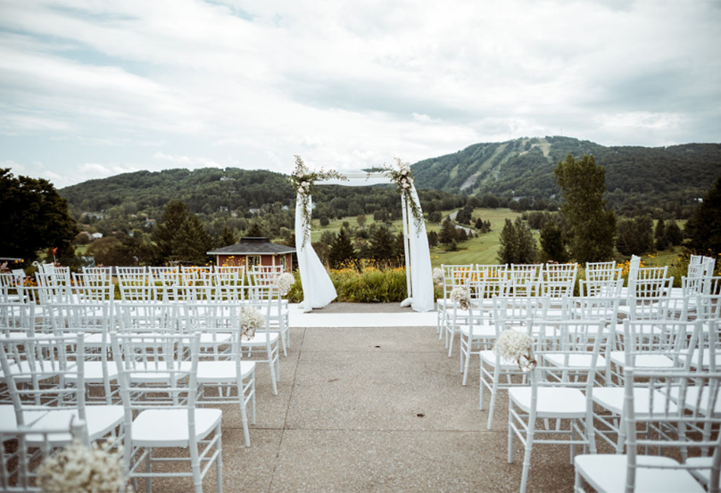 From May to October, the Château-Bromont Golf Course becomes a spectacular venue for celebrations, where the mountains and rolling greens create a magnificent natural backdrop.